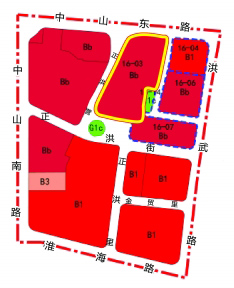 现代快报记者看到,整个地块位于秦淮区新街口街道,西至中山南路、东至洪武路、南至淮海路、北至中山东路,总用地面积约15.14公顷。其中新华社地块(16-03地块)北至中山东路、西至正洪营、南至正洪街、东侧至天丰大酒店,于2007年1月由苏宁置业有限公司通过公开出让方式取得开发建设权。