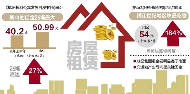 (原标题:上半年萧山长租公寓租金涨幅达27% 记者:王艺霖 制图:李健)